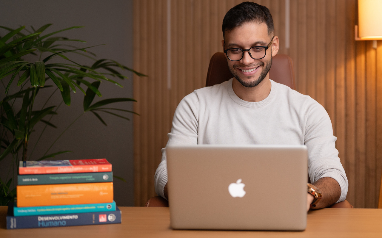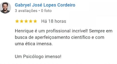 Olá, sou Henrique, psicólogo clínico especialista em Terapia Cognitivo-Comportamental e Psicologia Positiva.